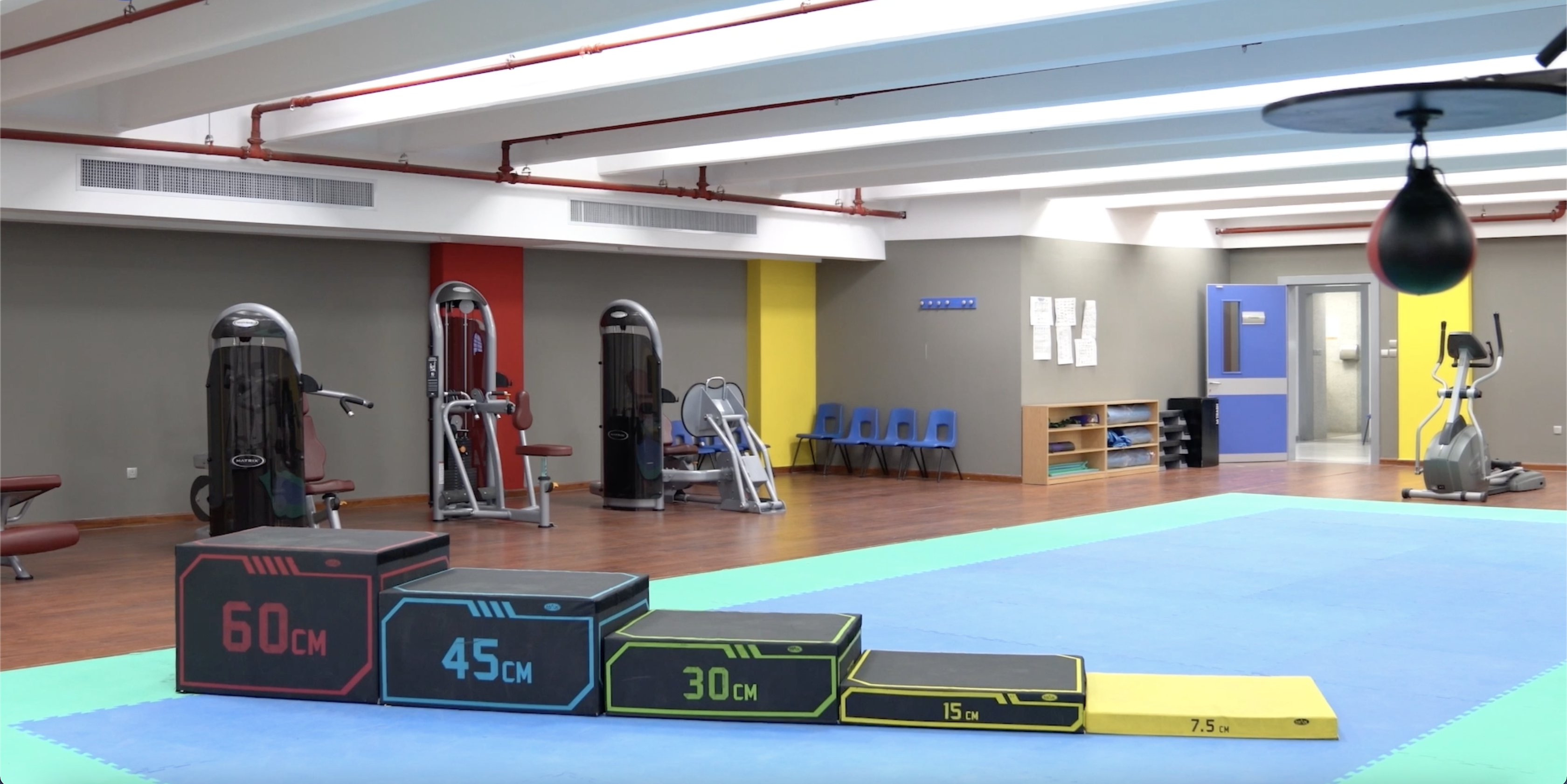 تضم المدرسة أربع (4) صالات واسعة ومكيفة بالكامل مخصّصة لكرة السلة والأنشطة متعددة الأغراض. وتستوعب هذه الصالات ما يصل إلى 200 متفرج. وتُستخدم لممارسة كرة السلة، الكرة الطائرة، الريشة الطائرة، كرة القدم، الفوتسال، كرة المراوغة (Dodgeball)، لعبة الـ Broomball، الهوكي الميداني، الهوكي الأرضي، هوكي إنلاين، التنس، الليزر تاغ، التمارين الجماعية، وغيرها من الأنشطة.
